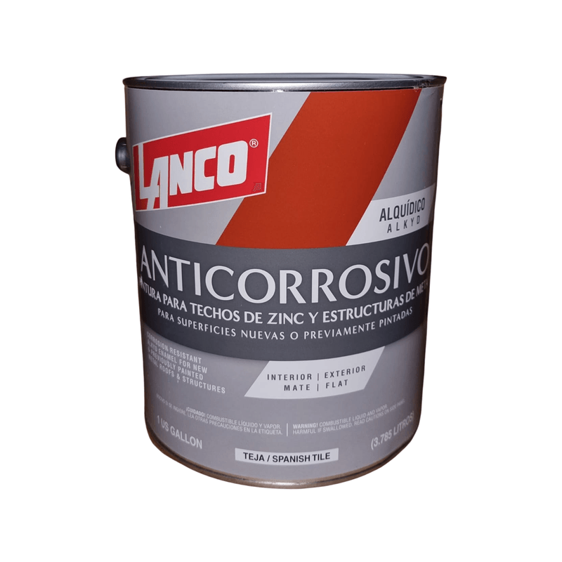ANTICORROSIVO PINTURA TECHO Medida: 3.8lt Galon Uso: Pintura Alquidica para Pintar Techos, Zinc, Fibrocementos Color: Spanish Red ( Rojo Colonial ) Marca: Lanco