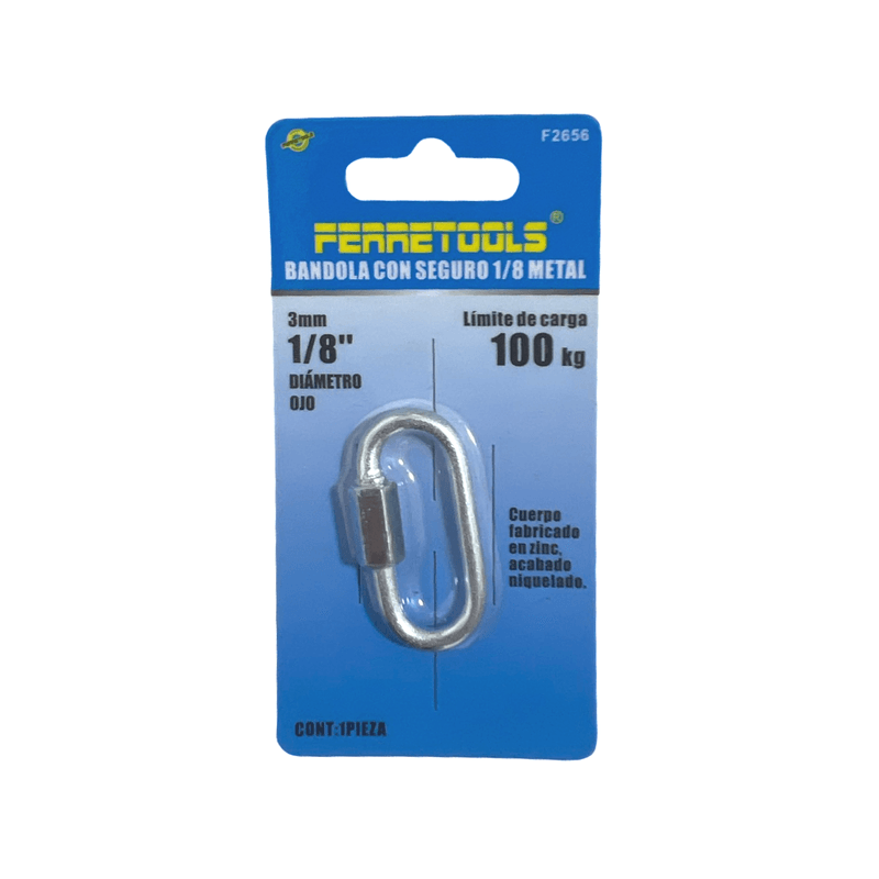 Tornillos y fijacionesMosquetonesBANDOLA ESLABON C/SEGURO ACERO FERRETOOLS