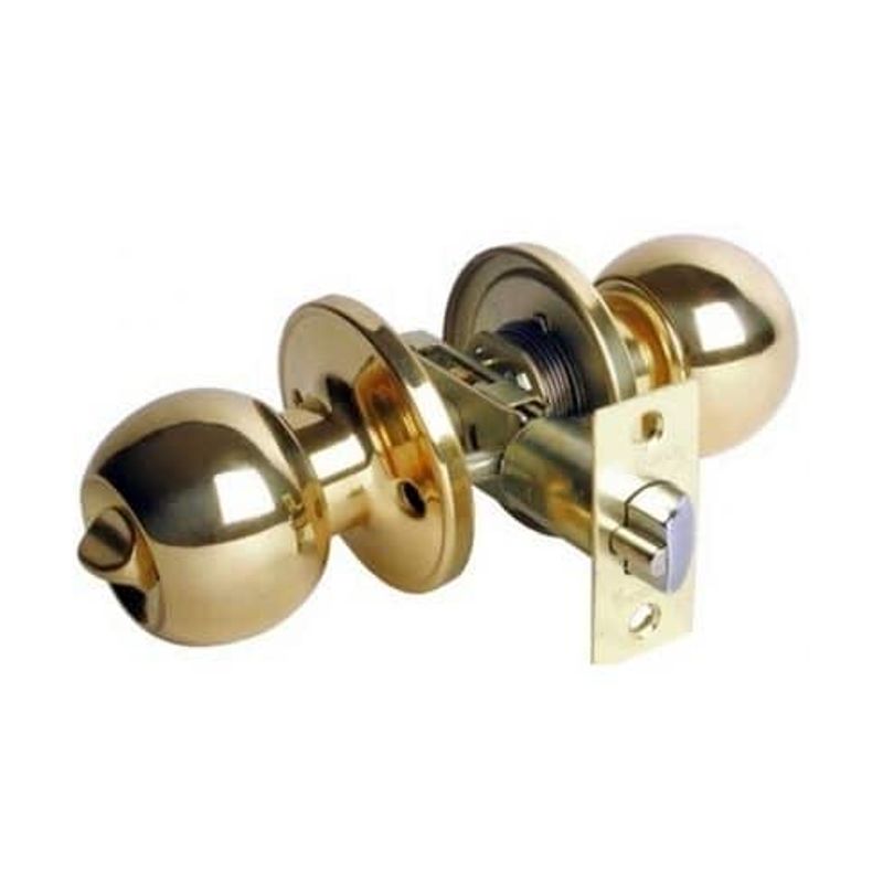 Cerradura pomo con estructura tubular, acabado en bronce pulido, cilindro y llaves en latón, pestillo de seguridad, de rápida instalación con una mayor sujecion a la puerta, cerradura liviana y pulida hecha para ambientes hostiles o corrosivos.