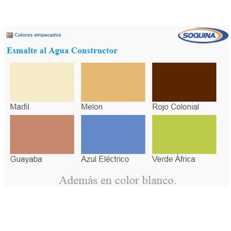 ESMALTE AL AGUA MODELO: CONSTRUCTOR COLOR: GUAYABA CONTENIDO 3.8LT APROX RENDIMIENTO: 35M2 APROX MARCA: SOQUINA