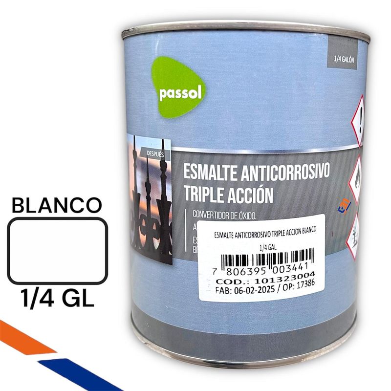 Esmalte Anticorrosivo Triple Accion Blanco 1/4 GALON (946ml) passol