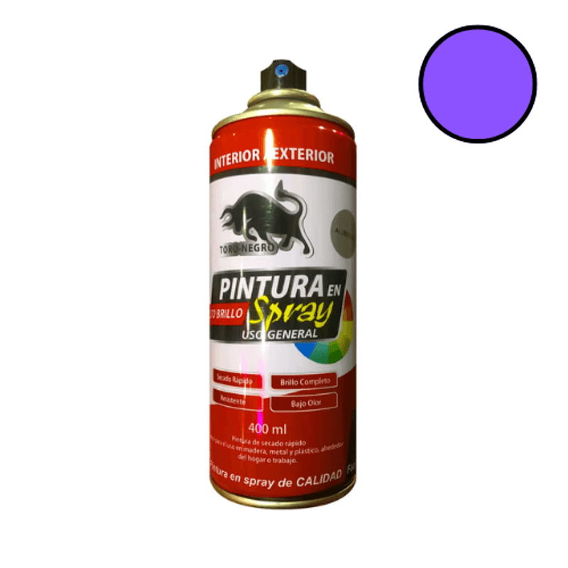 Explora el Spray Pintura Esmalte Morado de Toro Negro, ideal para crear acabados vibrantes y duraderos en superficies de metal, madera y plástico. Fácil de aplicar y de secado rápido.